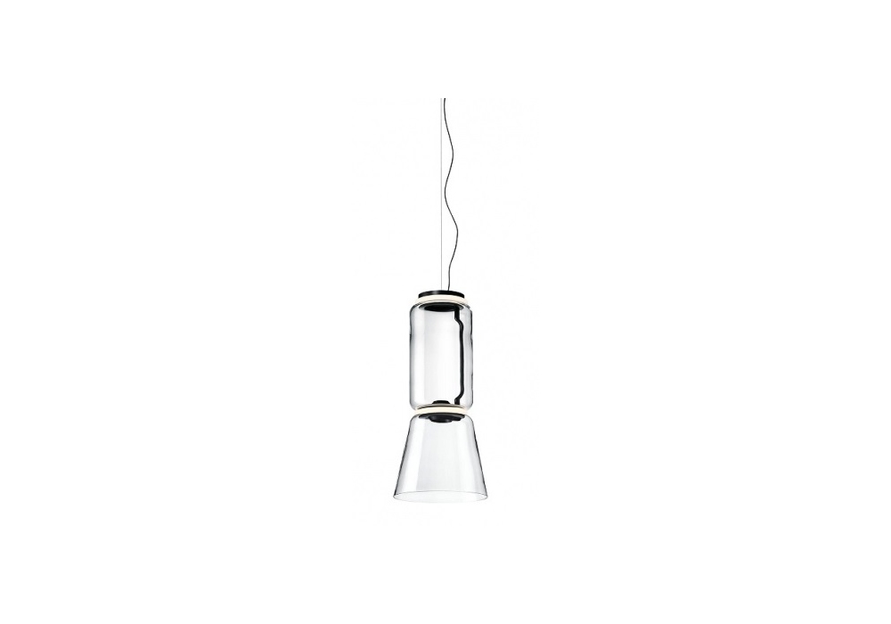 Noctambule conçue par Konstantin Grcic pour Flos est une suspension composée de éléments en verre sous différentes formes connectés entre eux, attache suspension et anneaux en fonte d'aluminium, bras latéral interne en acier hydro form, et diffuseurs externes à anneau en silicone optique opalin moulé par injection. L’alimentation dans la rosace permet de varier l'intensité lumineuse.