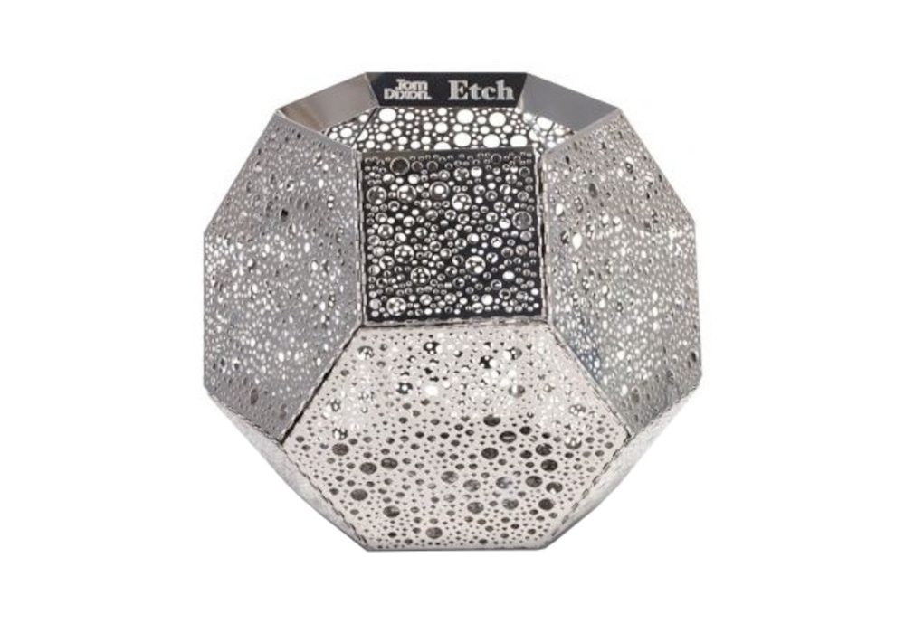 Etch Tea conçu par Tom Dixon est un bougeoir en acier.