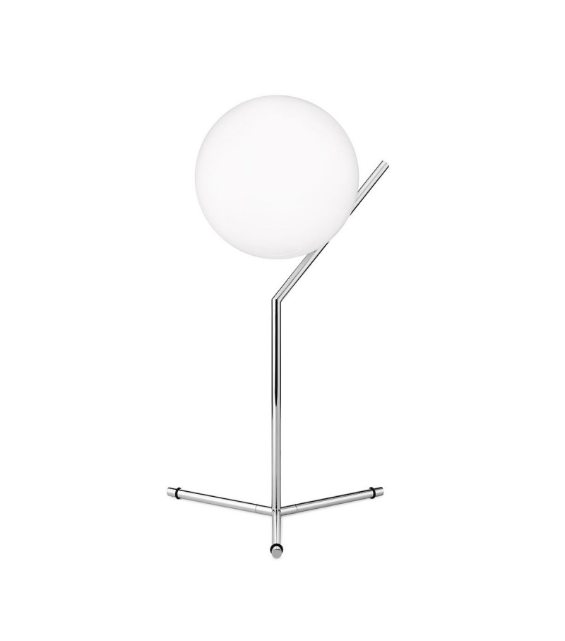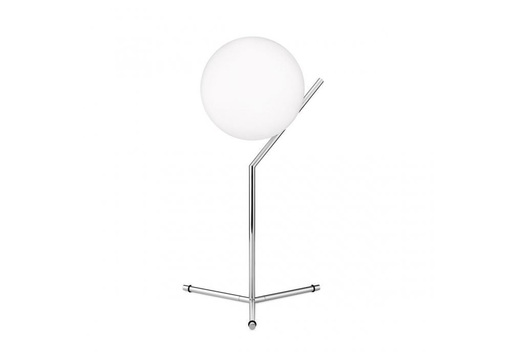 IC T1 conçue par Michael Anastassiades pour Flos est une lampe de table à lumière diffuse. Structure en laiton, acier noir ou chromé. Diffuseur opale en verre soufflé. Variateur d'intensité sur le câble d'alimentation. Ampoule non incluse.