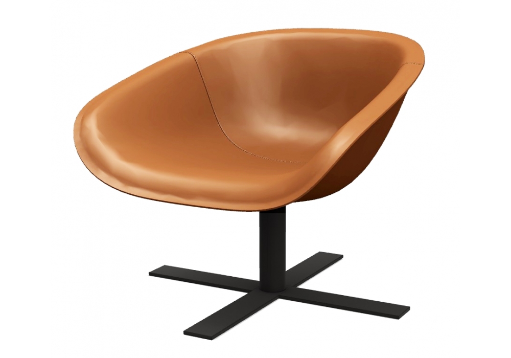 Mart conçu par Antonio Citterio pour B&B Italia est un petit fauteuil avec base pivotante en croix en acier peint nickel bronzé et revêtement en cuir.
