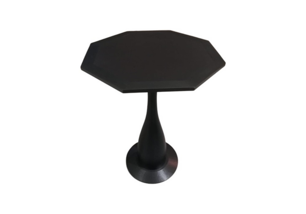 Ikò conçue par Romeo Sozzi pour Promemoria est une table d'appoint avec une tige effilée en érable noir qui supporte une corolle octogonale recouverte de cuir nabuck marron foncé.