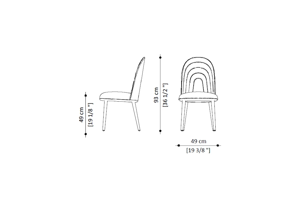 Echo conçue par Paolo Castelli est une chaise avec structure en contreplaqué courbé avec pieds fuselés en chêne teinté foncé, rembourrage en mousse de polyuréthane multi-densité. Le dossier, tapissé d'un motif arqué, rappelle la perspective intrigante des arcades bolognaises. Revêtement en cuir nubuck non amovible.