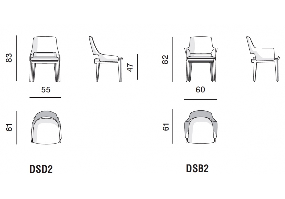 | Dimensions | DSD2_ 55 x 61 x H 83 cm; DSB2_ 60 x 61 x H 82 cm. |