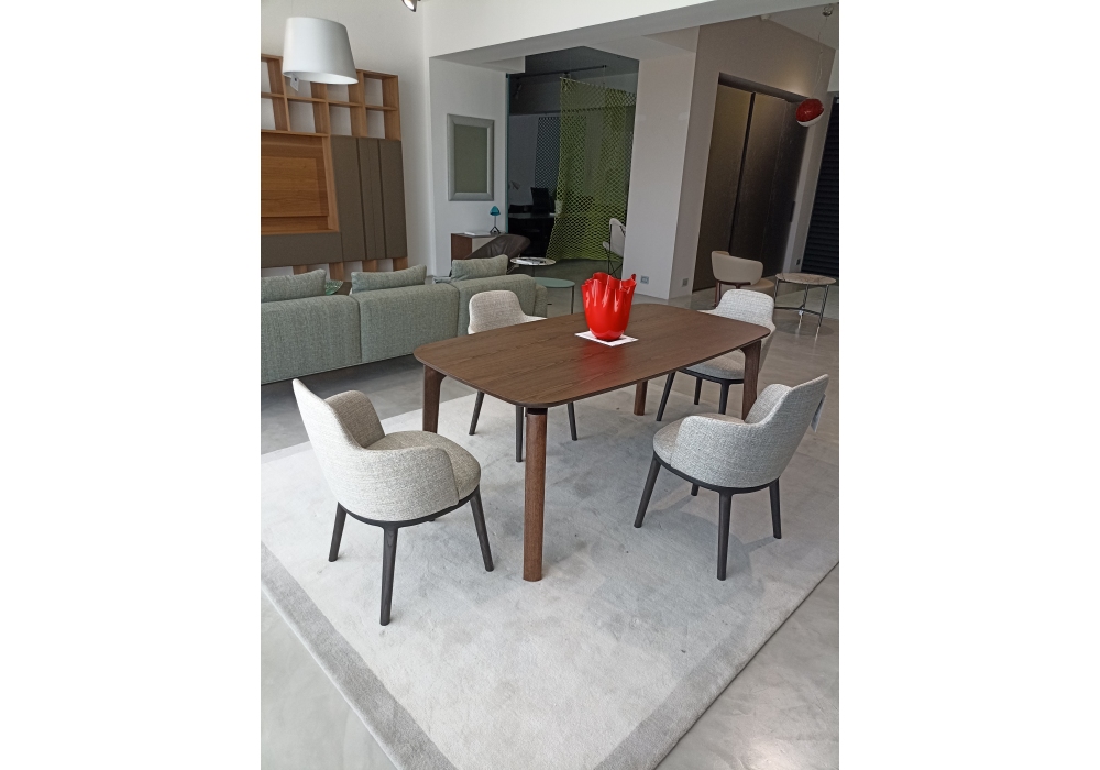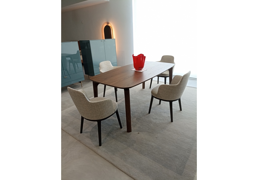 Nabucco is a table designed by Roberto Lazzeroni for Poltrona Frau. The traditional dining table becomes an elegant stylised sculpture. Artisan cabinet work merges with cutting-edge milling technologies. Advanced, complex woodworking processes have allowed the production of the table maintaining its unique aesthetic. The solid wood legs look tapered and light.