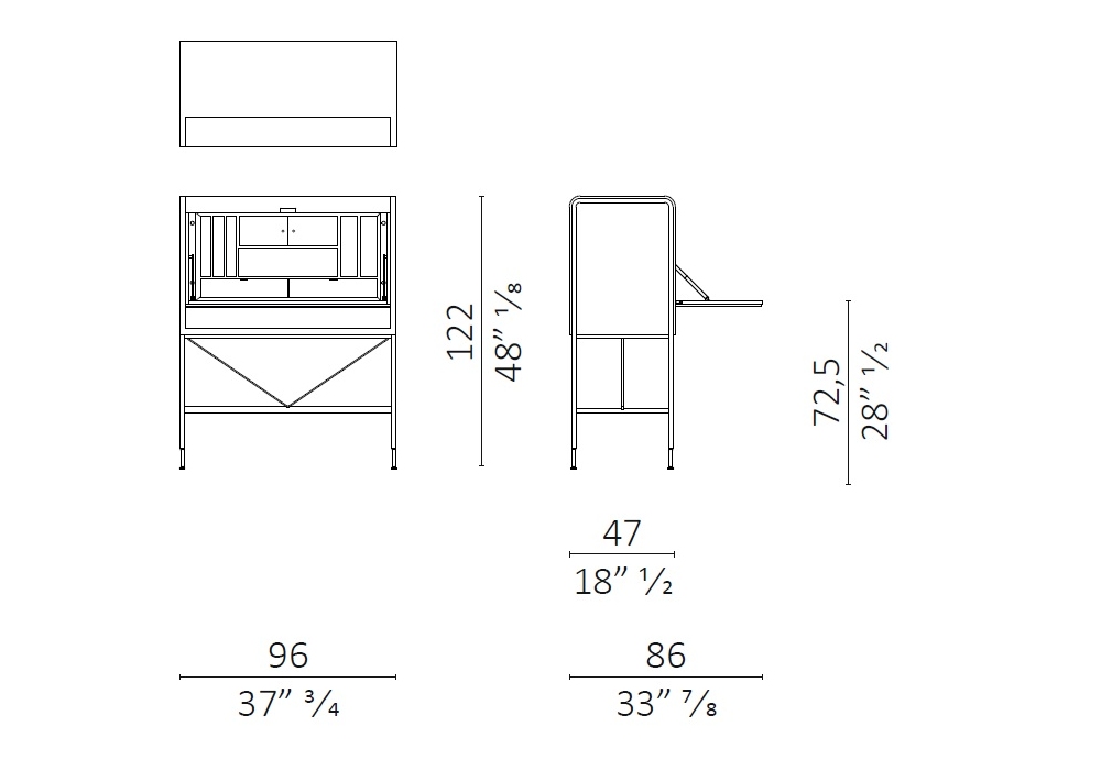 | Dimensions | 96 x 47/86 x H 122 cm |