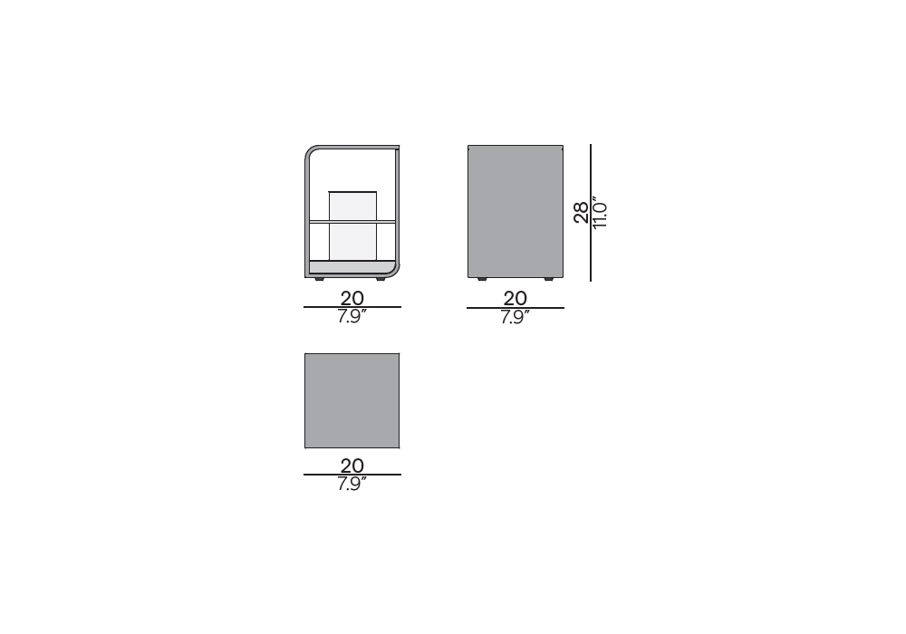 | Dimensions | • 20 x 20 x H 28 cm; • 20 x 20 x H 43 cm; • 20 x 20 x H 73 cm |