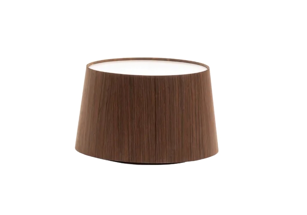 Planck conçue par Piero Lissoni pour B&B Italia est une table basse avec plateau en verre gravé semi-transparent et structure multilamaire plaquée avec une finition effet palissandre. Lumière LED à intensité variable. Lumière LED à intensité variable.