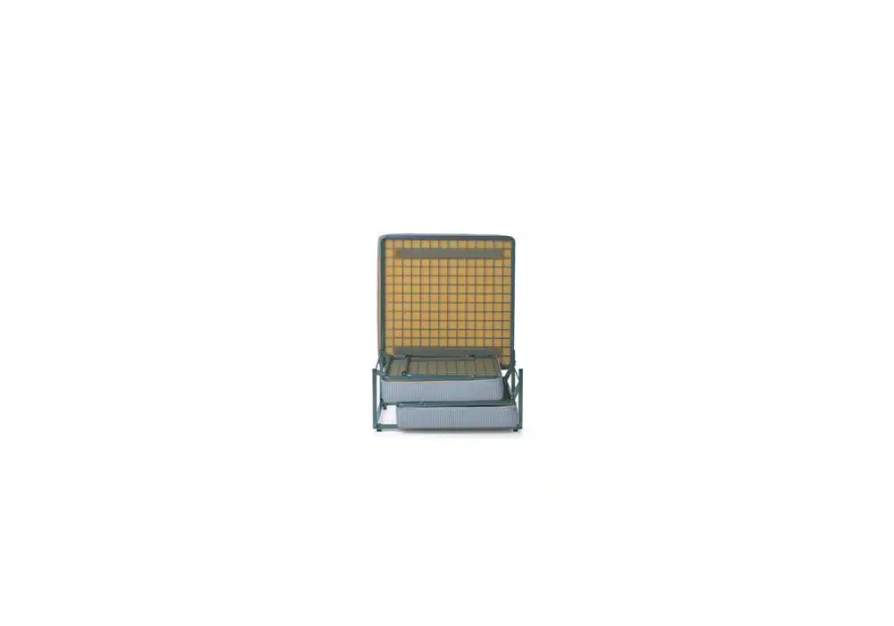 Yaki conçu par Campeggi est un pouf facilement convertible, juste quelques gestes et vous aurez un lit single avec un matelas épais et un sommier en acier soudé. Yaki est la meilleure solution chaque fois qu'un lit supplémentaire est nécessaire. Polyvalent et facile, Yaki peut compléter les environnements élégants et modernes.