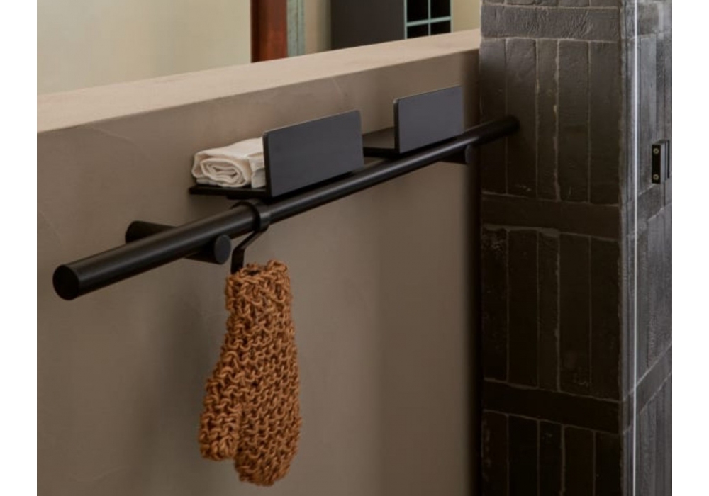 Dot Line conçu par García Cumini pour Agape est un porte-serviettes réalisé en tubulaire d’aluminium formés de supports de soutien à une barre avec finition anodisée brossée noir. Crochet en aluminium inclus!
