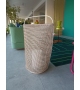 Lanterna conçue par Claesson Koivisto Rune pour Paola Lenti est une lampadaire/lampe de table avec structure en acier inoxydable peint ivoire mat et abat-jour en tissu Kimia bicolore blanc/foin. Module LED dimmable avec batterie rechargeable et autonomie d'environ 6 heures.