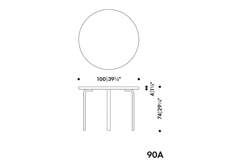Aalto 90A conçue par Alvar Aalto pour Artek est une table ronde en bouleau massif avec pieds et bande de chant laqués naturel.