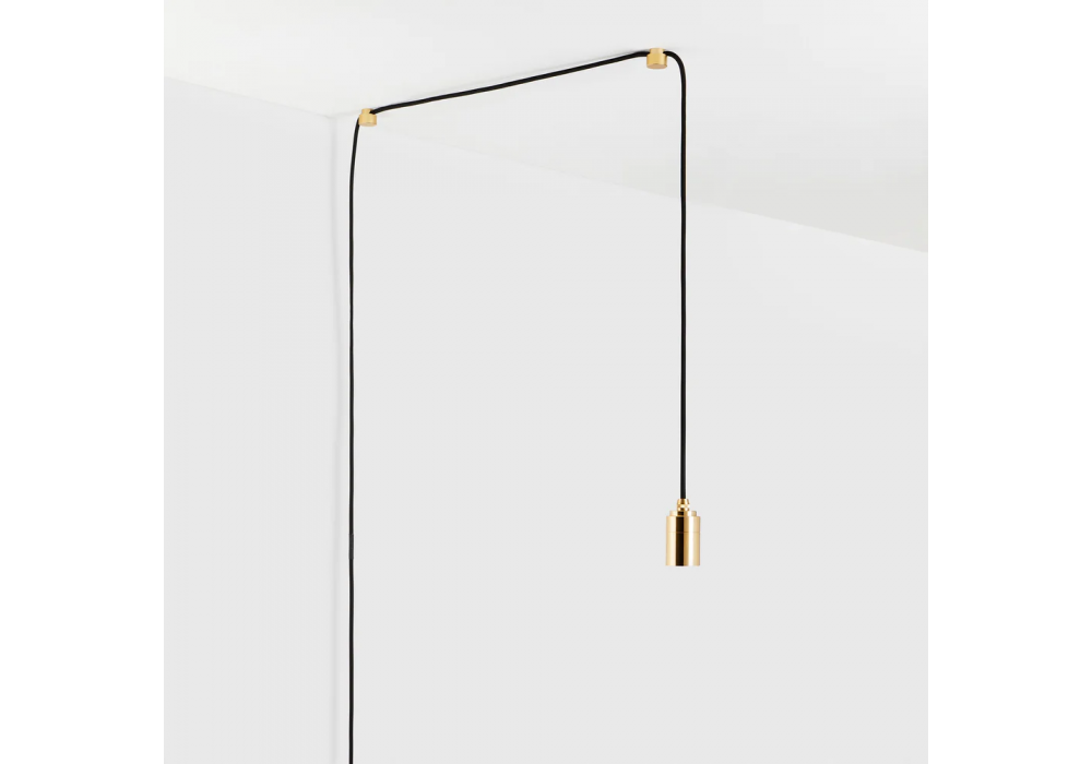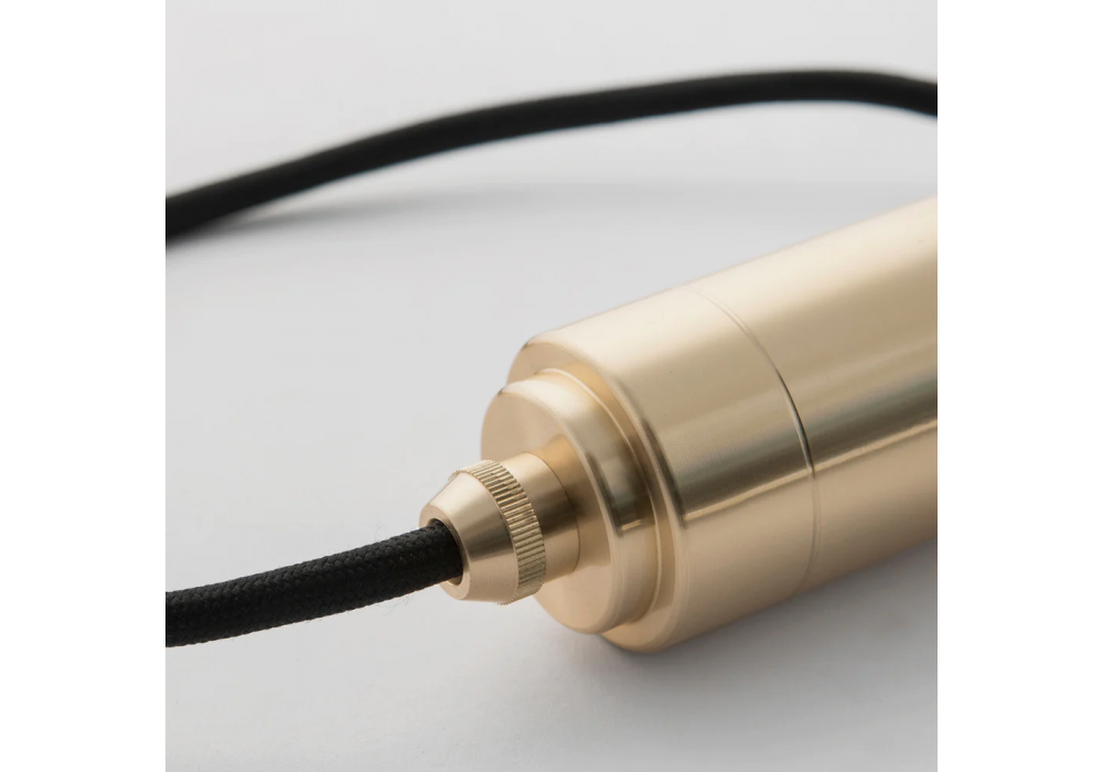 Plug-In conçue par Tala est une suspension avec finition en laiton et câble textile noir.