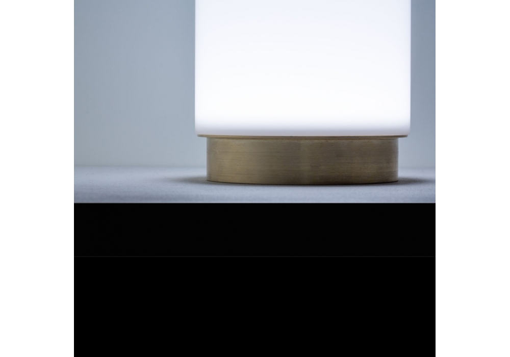 Bugia conçue et produite par Davide Groppi est une lampe de table rechargeable avec un corps de lampe cylindrique en métal peint de couleur or. Le diffuseur est en méthacrylate et abrite une source lumineuse LED avec une gradation de 3000 K° avec système marche/arrêt.