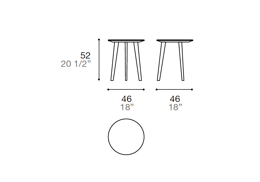 Life conçue par Haftenstudio pour Alf DaFre est une table basse circulaire avec trois pieds inclinés entièrement en bois de chêne finition fossile.