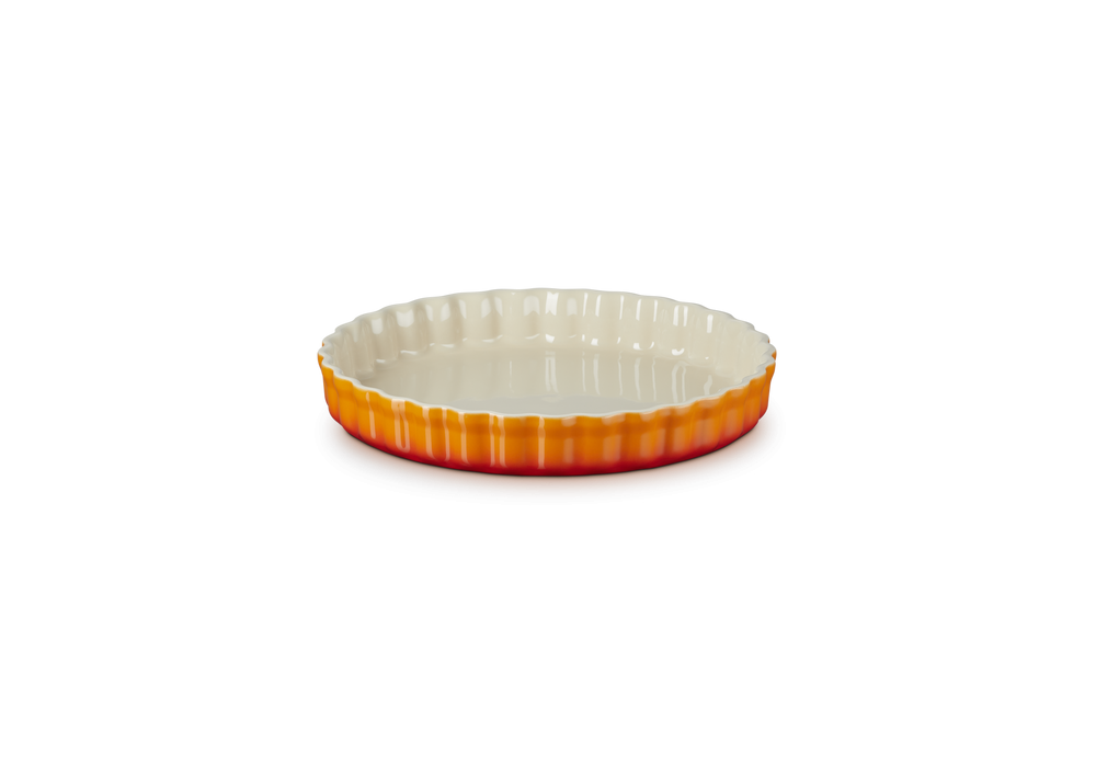 Tortiera conçu et réalisé par Le Creuset est un moule à gâteau circulaire en grès vitrifié résistant à la chaleur.