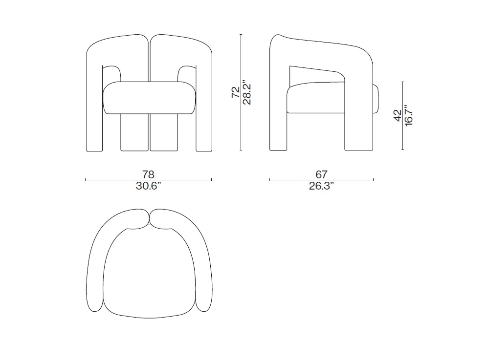 Dudet conçu par Patricia Urquiola pour Cassina est un fauteuil entièrement rembourré réalisé avec revêtement en tissu et fermeture éclair grise.