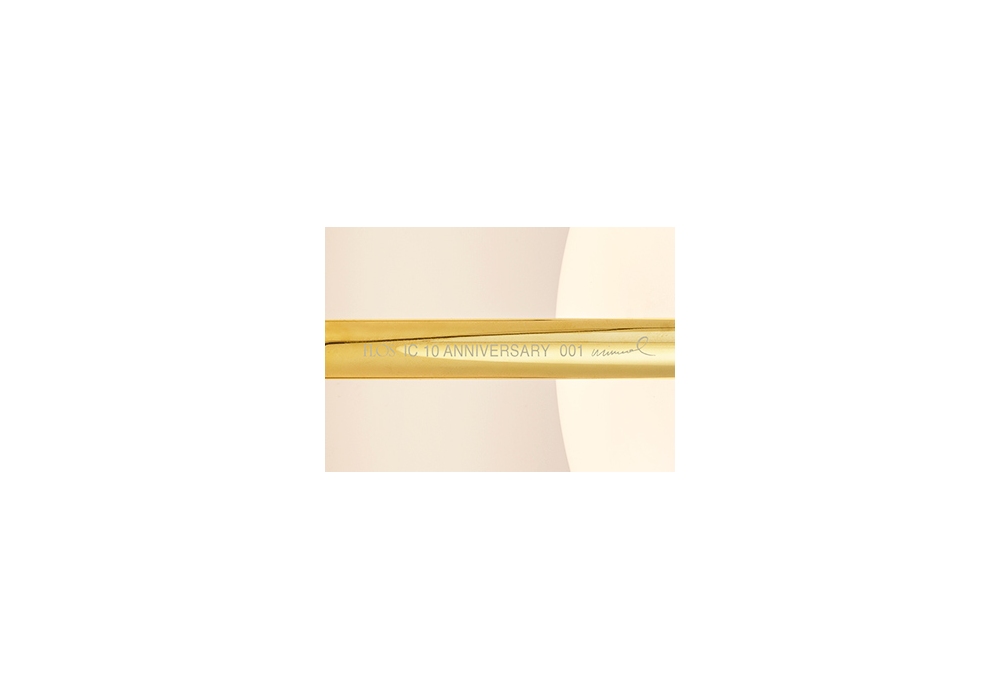 IC S2 10 Anniversary conçue par Michael Anastassiades pour Flos est une suspension en acier, laiton, verre soufflé, placage 24K.