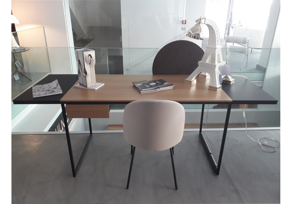 Tuka conçue par Connubia est une chaise avec structure en tube de métal noir. Corps avec dossier et assise rembourrée avec revêtement fixe en tissu, couleur sable.