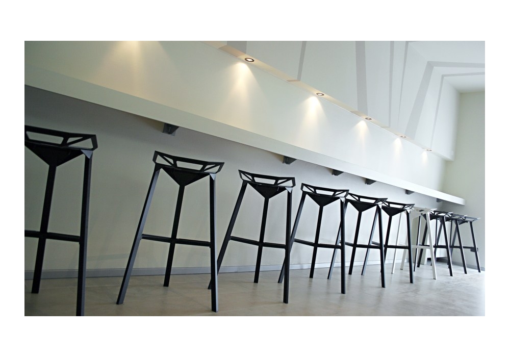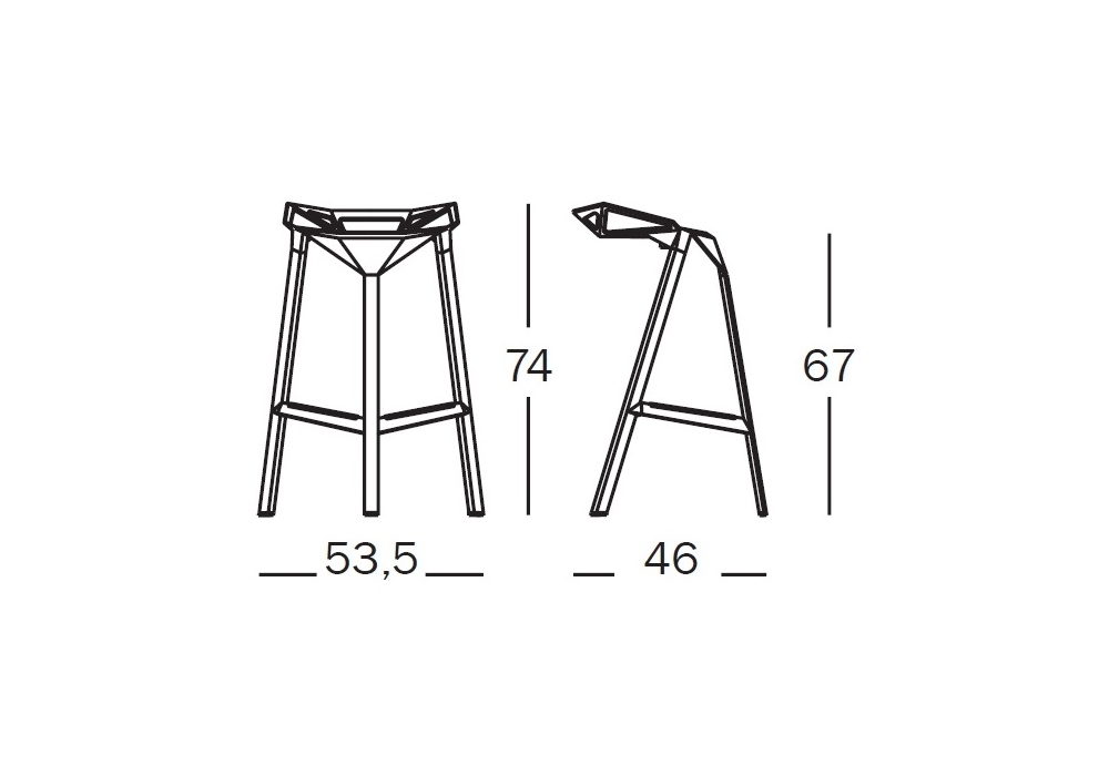 Stool One conçu par Konstantin Grcic pour Magis est un tabouret empilable, également adapté à l'extérieur. Pieds en aluminium anodisé, assise en aluminium moulé sous pression avec traitement de fluotitanisation et peint en polyester.