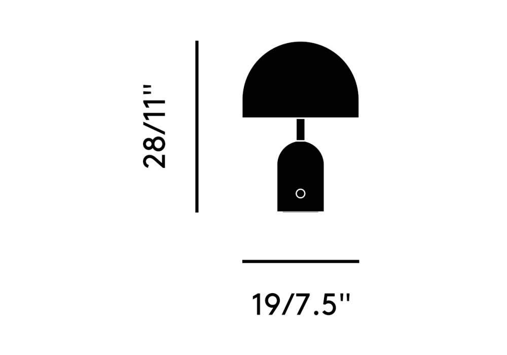 Bell Portable Fluoro conçue par Tom Dixon est une lampe de table portable en acier poli avec revêtement en poudre.