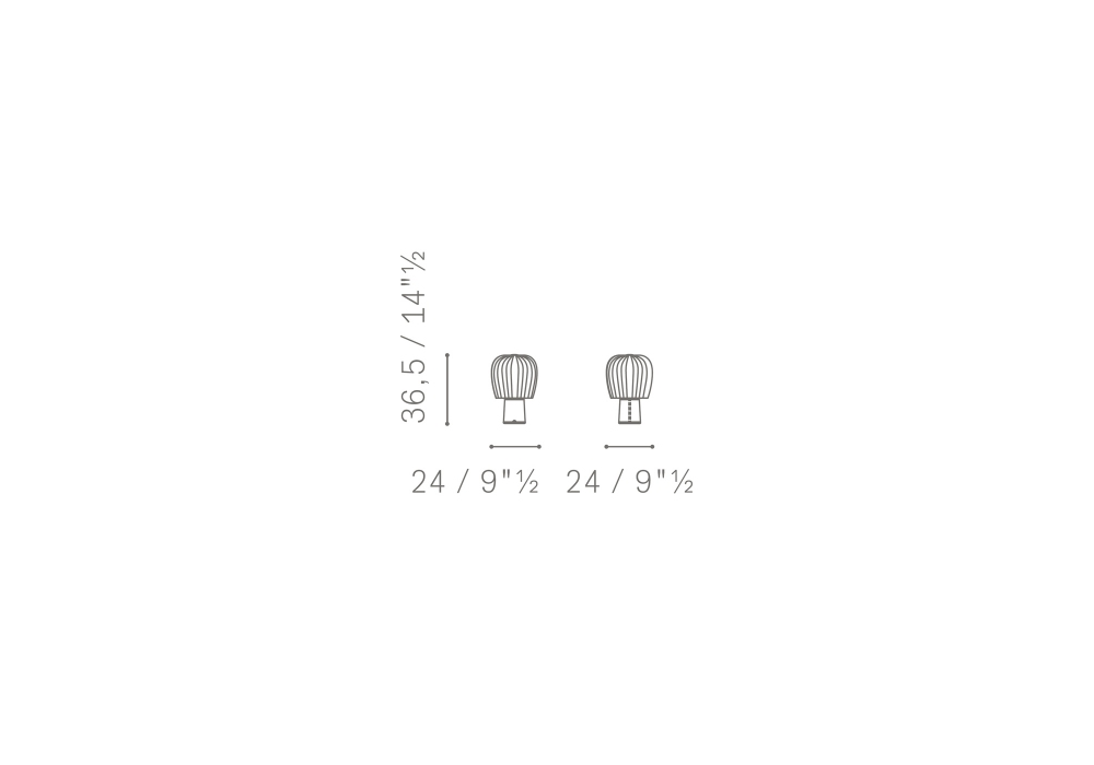 Nymph conçue par Sebastian Herkner pour Poltrona Frau est une lampe de table avec une base tronconique et une structure en laiton naturel recouverte de Pelle Frau®. L'abat-jour a une forme arrondie en verre soufflé avec une finition nervurée et adopte un diffuseur cylindrique en polyméthacrylate de méthyle. La source lumineuse adoptée est un module LED avec interrupteur tactile marche/arrêt et système de gradation.