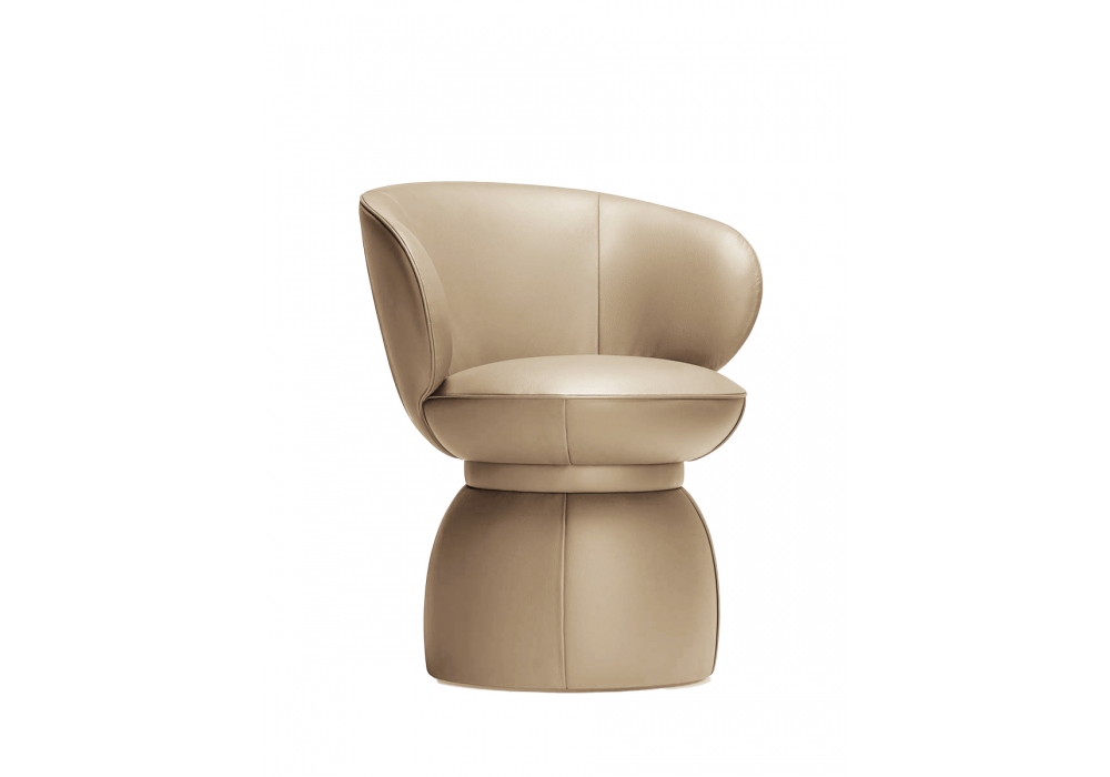 Leplì conçu par Kensaku Oshiro pour Poltrona Frau est un petit fauteuil pivotant avec mécanisme de « retour » réalisé avec un rembourrage en mousse de polyuréthane et ouate de polyester et un revêtement en cuir.