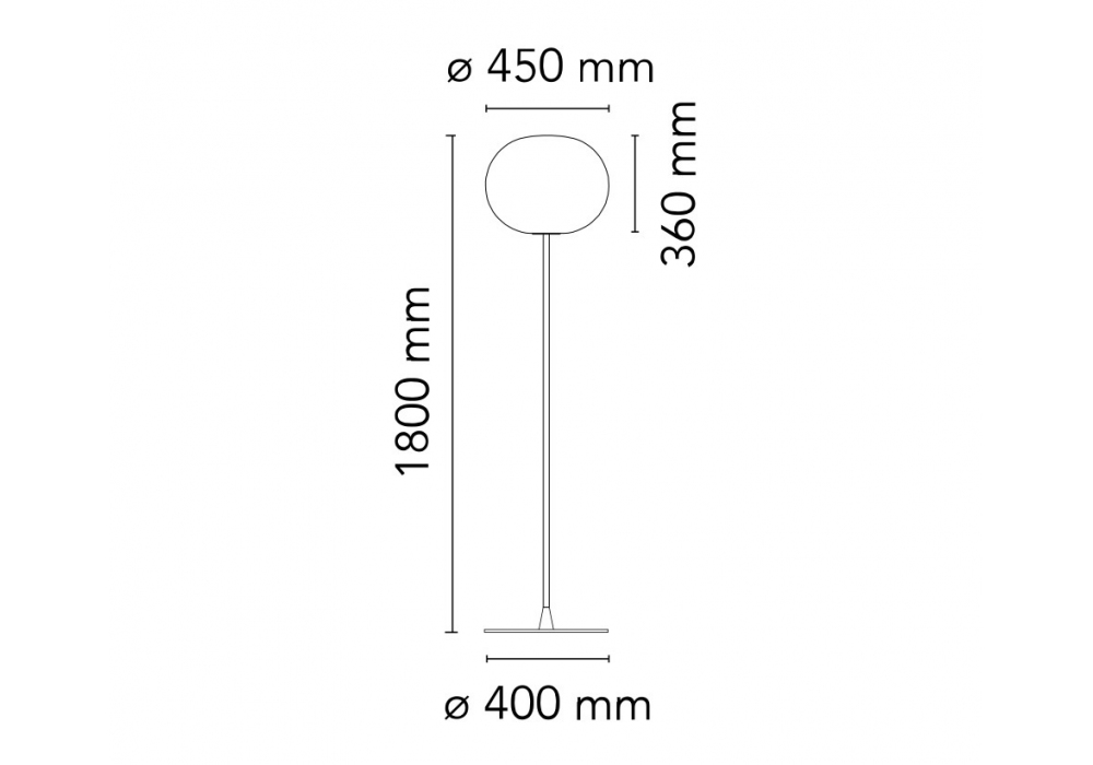 Glo-Ball F3 conçu par Jasper Morrison pour Flos est un lampadaire à lumière diffuse. Son diffuseur est composé d'un verre opalin soufflé bouche, avec une finition extérieure dépolie à l'acide, et d'une bague filetée en alliage d'aluminium moulé sous pression avec finition galvanique. La base, la tige et le support du diffuseur sont en acier épais, le tout peint en gris liquide. Le câble est équipé d'un variateur électronique permettant de régler l'intensité lumineuse. Ampoule non incluse.