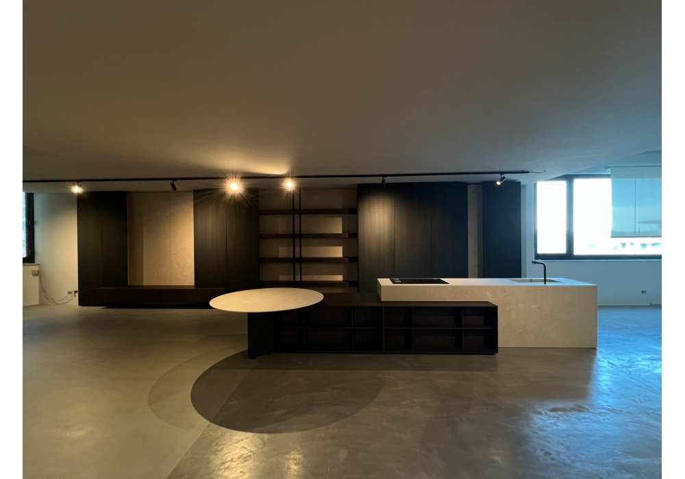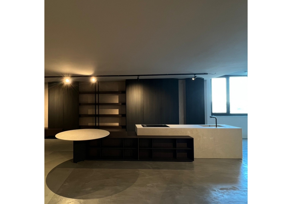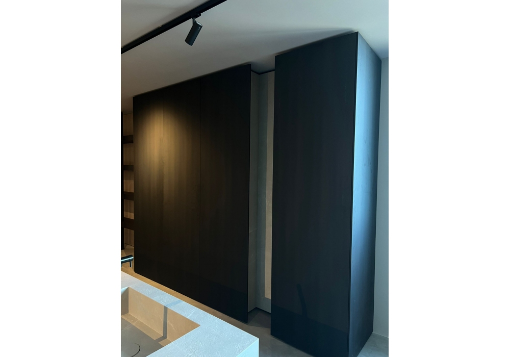 Skill Gres + MH6 Milltech conçue par Modulnova est une composition au design essentiel et contemporain, alliant matériaux techniques et finitions raffinées. Les portes en Gres Gold Pearl (TDC) et Milltech Vintage (D56) sont dépourvues de trous de poignée, pour une esthétique épurée et linéaire. Les cadres sont respectivement en Grigio Texture (MGT) et Milltech Lava (D98), associés à des pieds H.6 cm pour Skill Gres et H.1,5 cm pour MH6. Tous les modules internes, tiroirs et commodes, sont équipés de mécanismes Blum « Basic Nero », avec supports de porte coordonnés en noir.