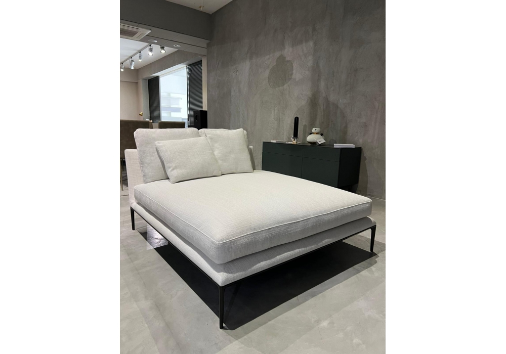 Atoll conçue par Antonio Citterio pour B&B Italia est une chaise longue avec structure en métal et revêtement en tissu. Avec coussins de dossier.