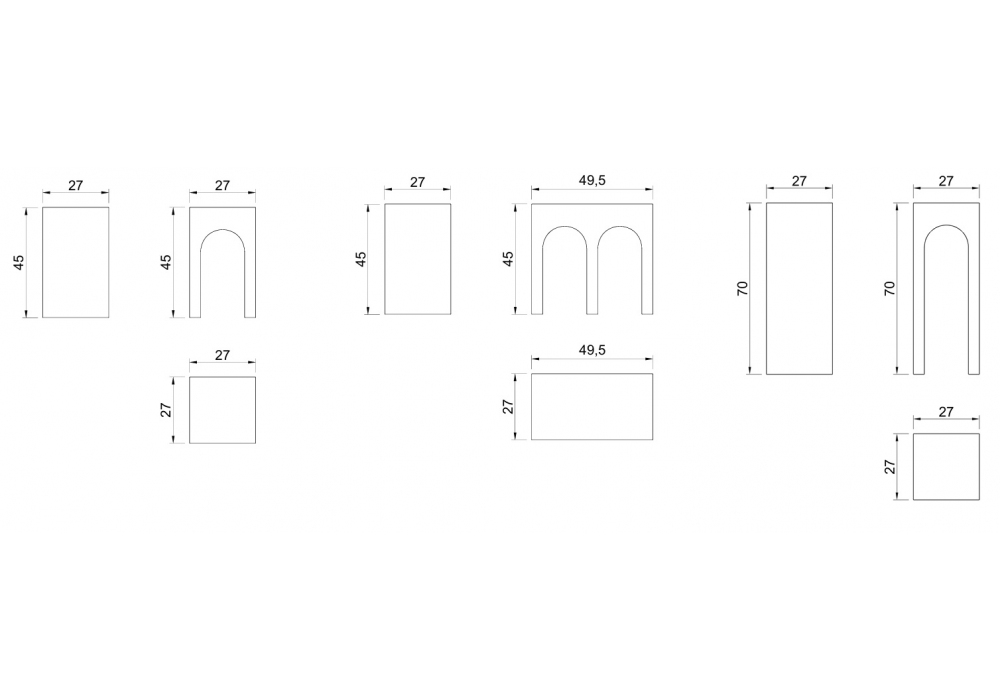 | Dimensions | 27 x 27 x H 45 cm; 49.5 x 27 x H 45 cm; 27 x 27 x H 70 cm. |