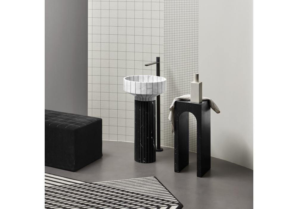 Roma conçue par Antonio Lupi est une table basse/tabouret entièrement réalisée en marbre.