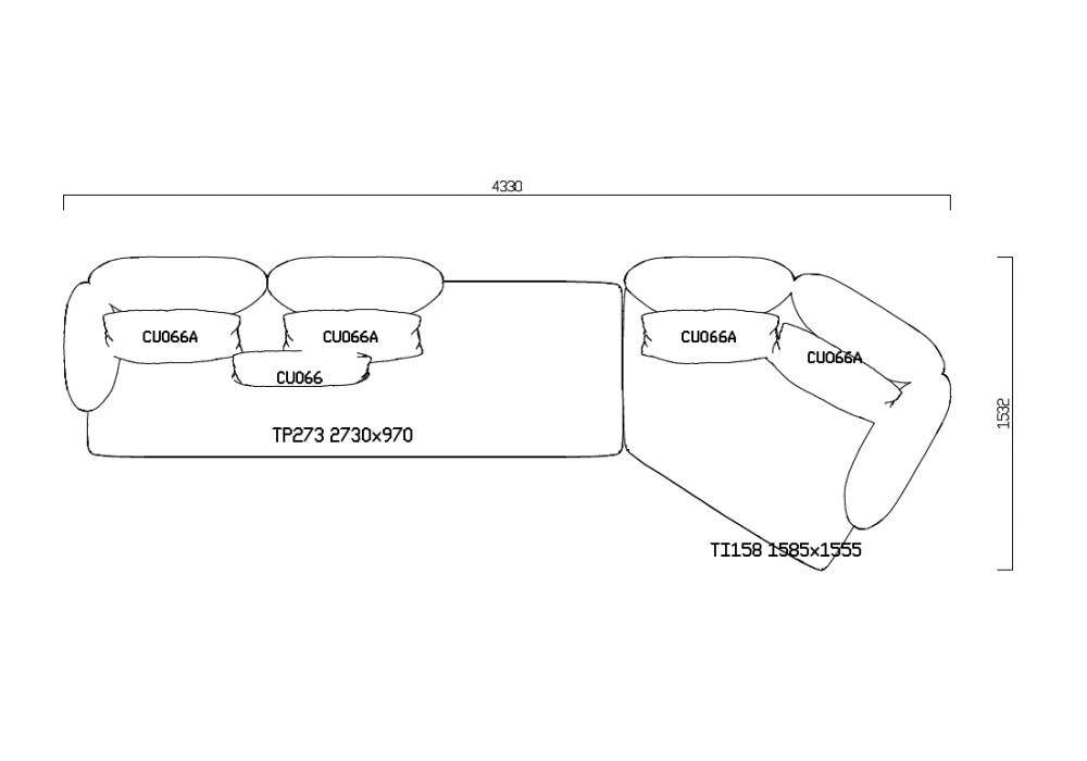 | Coussins décoratifs | Nr. 4_ 66 x 10 x H 44 cm; Nr. 1_ 66 x 10 x H 33 cm. |