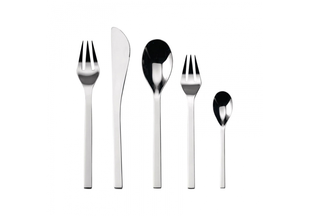 Set de couverts 5 pièces en acier inoxydable 18/10 brillant de la collection Colombina, dessiné par Doriana et Massimiliano Fuksas pour Alessi.
