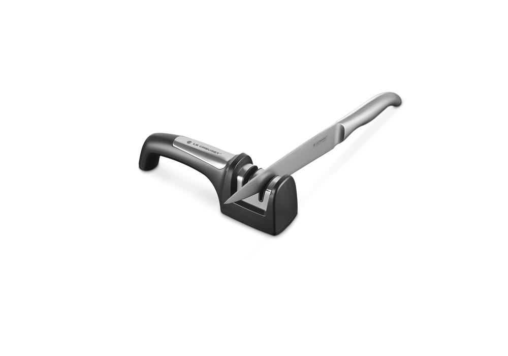 Aiguiseur Le Creuset à deux phases avec meules diamantées pour tous les couteaux à lame lisse.