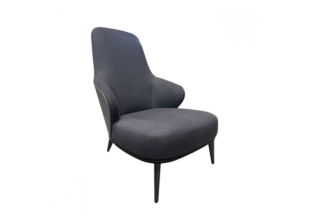 Leslie conçu par Rodolfo Dordoni pour Minotti est un fauteuil composé d'une base en aluminium, d'une coque extérieure en cuir et d'un revêtement intérieur en tissu.