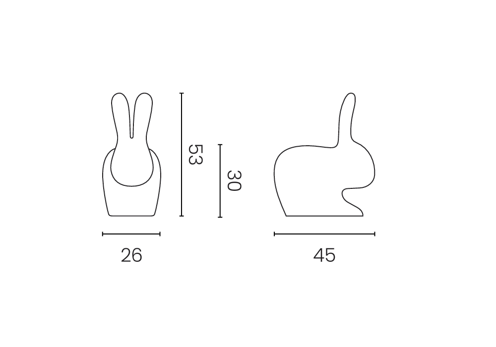 Rabbit Baby conçu par Stefano Giovannoni pour Qeeboo est une chaise réalisée en polyéthylène. L'idée du lapin vient de la connexion entre sa silhouette et la silhouette d'une chaise, où les oreilles du lapin deviennent le revers de la chaise. Disponible en différentes finitions.