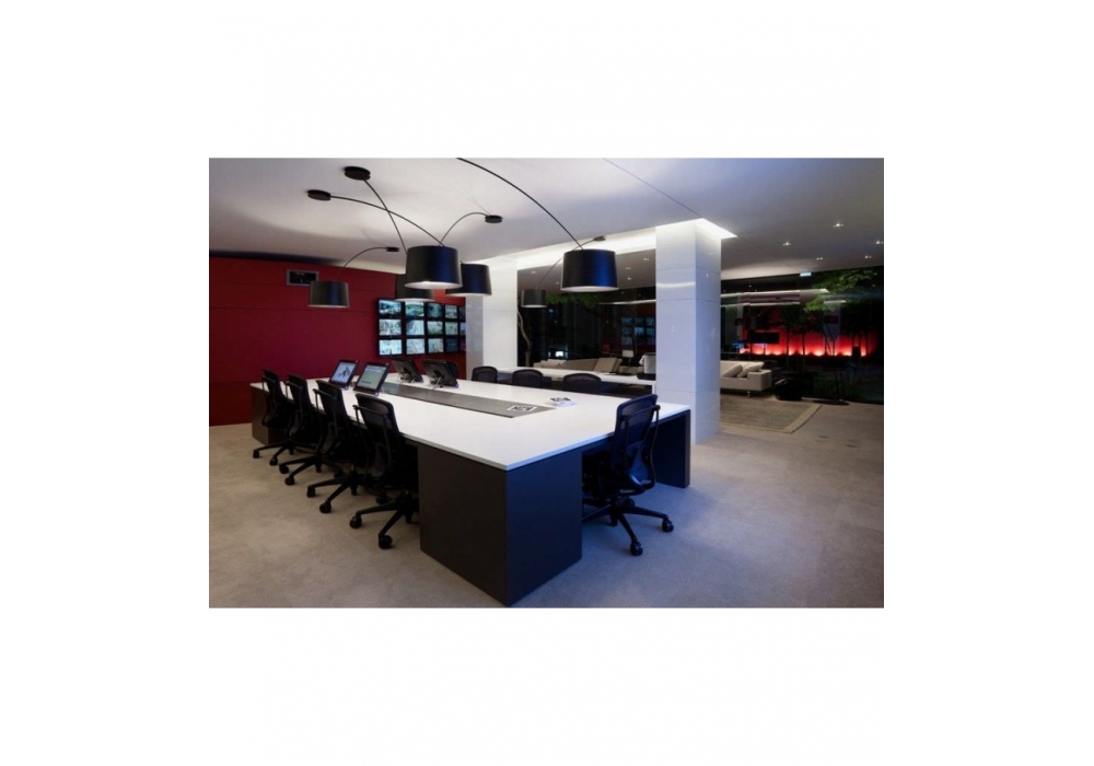 Twiggy conçu par Marc Sadler pour Foscarini est un lampadaire avec bras pivotant et abat-jour en matériau composite sur une base en fibre de verre peinte. Le diffuseur interne est en polycarbonate translucide et protège une source lumineuse LED ou halogène avec douille E27.