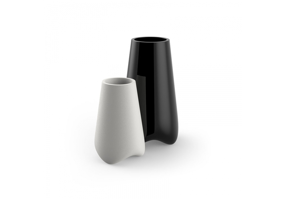 Pal conçue par Karim Rashid pour Vondom est une jardinière haute en résine de polyéthylène avec finition laquée brillante ou mate ou avec éclairage interne. Disponible en différents modèles.