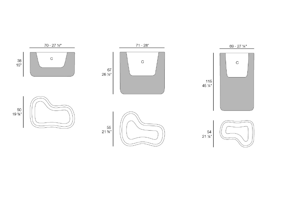 | Dimensions | 70.5 x 50.5 x H 38 cm; 71.5 x 55 x H 67 cm; 68.5 x 54 x H 115 cm. |
