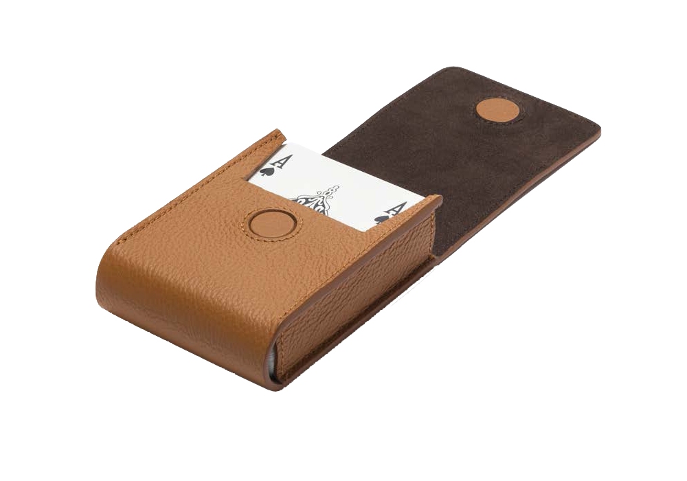 Card Leather Pochette conçue par Giobagnara x Poltrona Frau est une pochette réalisée en Pelle Frau® ColorSphere® avec doublure intérieure et fermeture magnétique. Comprend 1 jeu de cartes Giobagnara.
