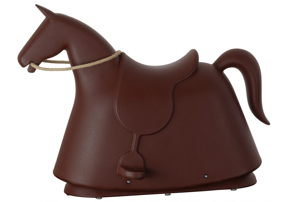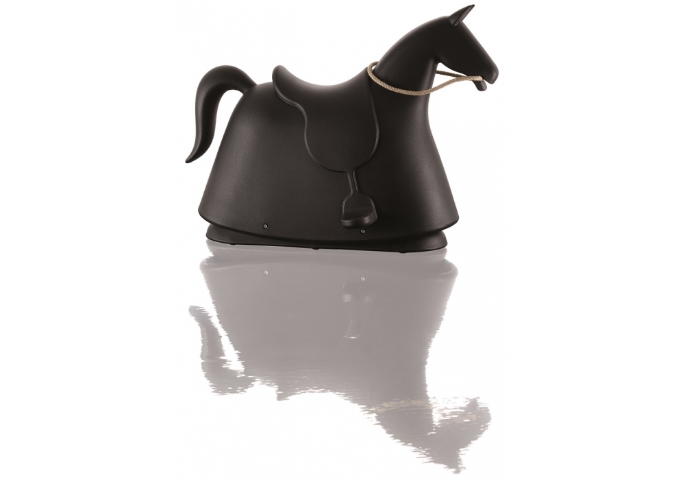 Rocky conçu par Marc Newson pour Magis Me Too est un cheval à bascule en polyéthylène. Rêne en corde de chanvre naturel. Disponible en différentes finitions.