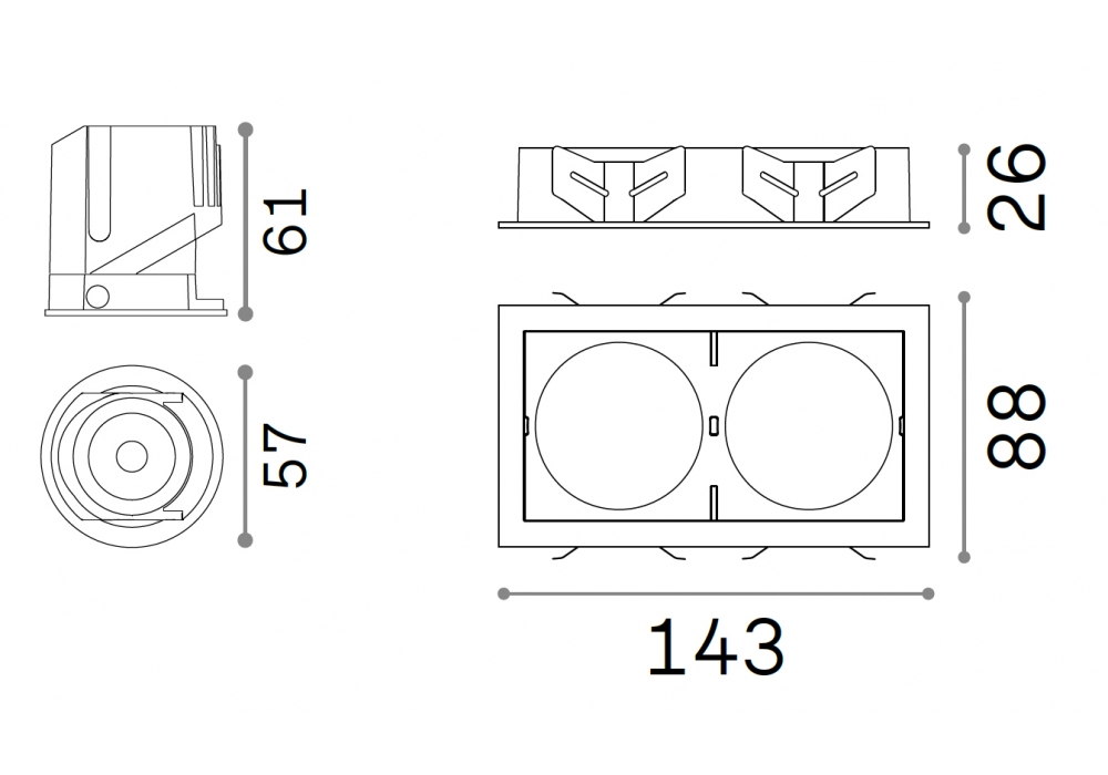 Bento Double conçu et produit par Ideal Lux est un plafonnier circulaire encastrable avec un réflecteur quadrangulaire encastré en métal et un anneau peint en noir. Les sources lumineuses adoptées sont des types de LED intégrés. Bento Double est disponible en différentes finitions et versions dimmables.