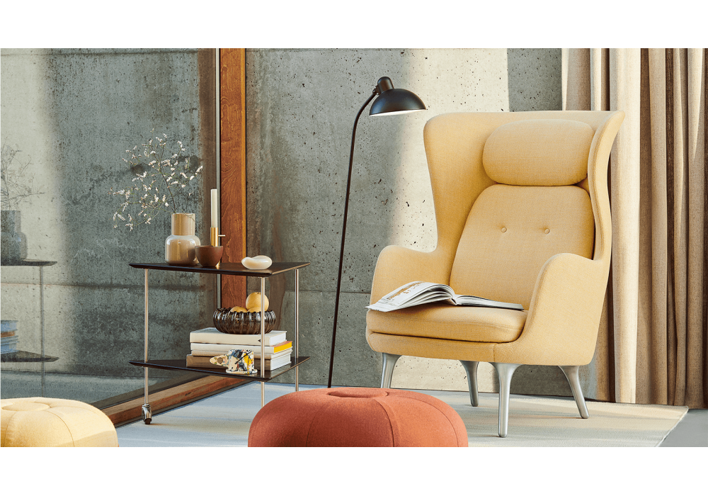 Kaiser Idell conçu par Christian Dell pour Fritz Hansen est un lampadaire avec diffuseur articulé en acier. Disponible en différentes finitions.