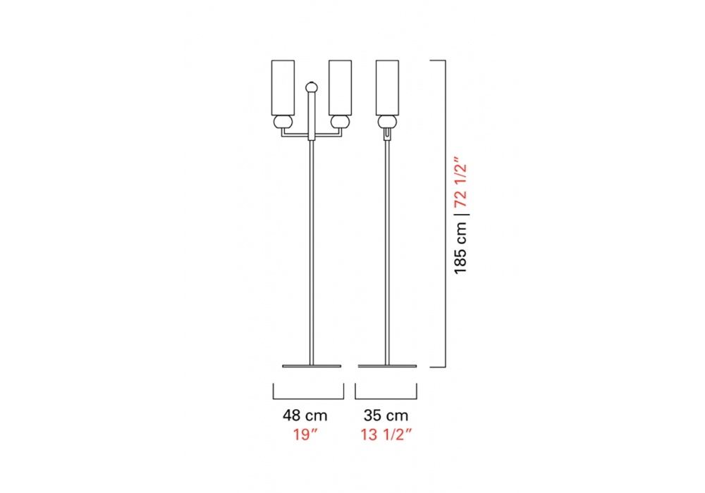 Gallia conçu et produit par Barovier & Toso est un lampadaire avec base circulaire et tige métallique verticale avec ornements en verre vénitien. Le diffuseur est cylindrique en verre vénitien blanc et protège une source lumineuse LED ou halogène dimmable. Gallia est disponible en différentes finitions.