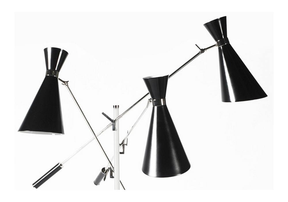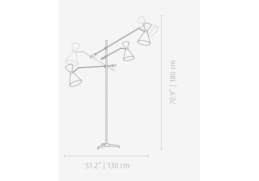 Stanley conçu par DelightFULL est un lampadaire avec une structure faite à la main en laiton et les abat-jour sont en aluminium, il dispose de trois bras mobiles pour vous permettre de positionner les lumières exactement comme vous le souhaitez.
