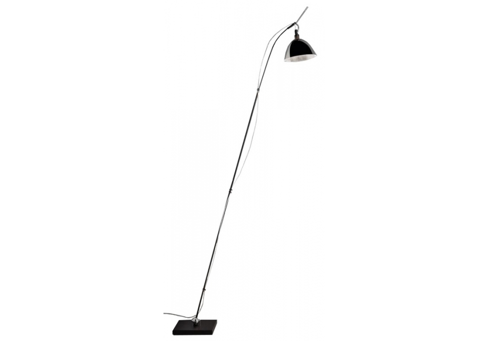 Max Floor conçu et produit par Ingo Maurer est un lampadaire en aluminium pur et acier inoxydable. Rotation continue et inclinaison dans toutes les directions via une rotule. Le diffuseur est disponible en aluminium poli ou en noir mat.