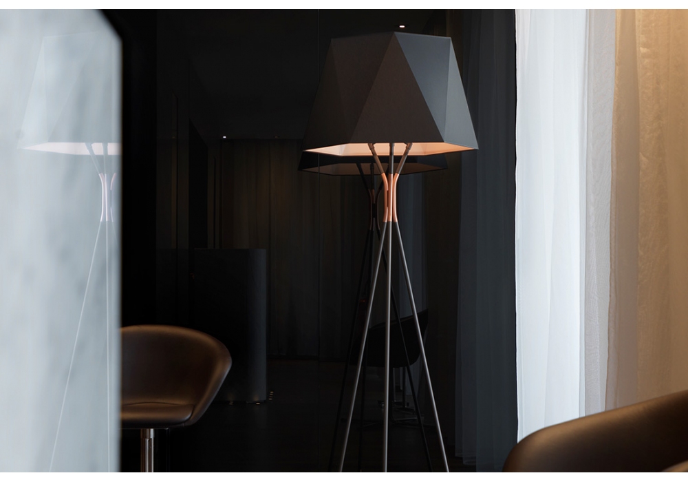 Solitaire conçu par Émilie Cathelineau pour CVL Luminaires est un lampadaire disponible en 2 dimensions. Son design présente un abat-jour aux facettes typiques d'un diamant Solitaire et est positionné sur un trépied aux lignes fortes et décisives. Il est également disponible en différentes finitions.