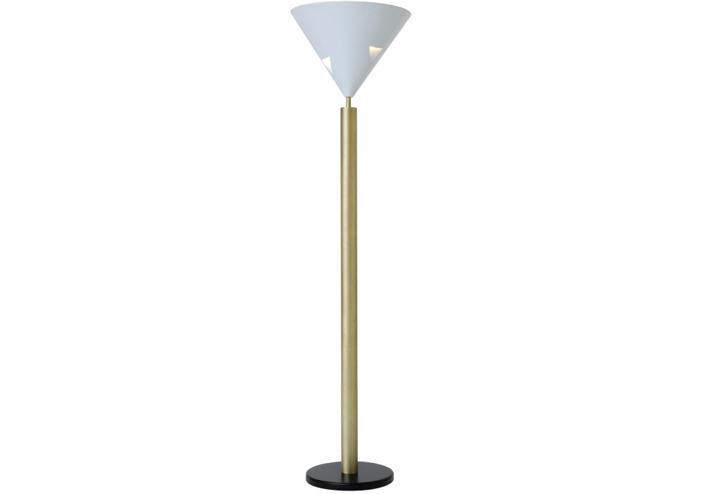 T Series conçu par Atelier Areti est une lampe de sol caractérisée par un cadre en laiton brossé et un abat-jour en métal verni en forme de cône. La base est en finition noire. Ampoule non incluse.