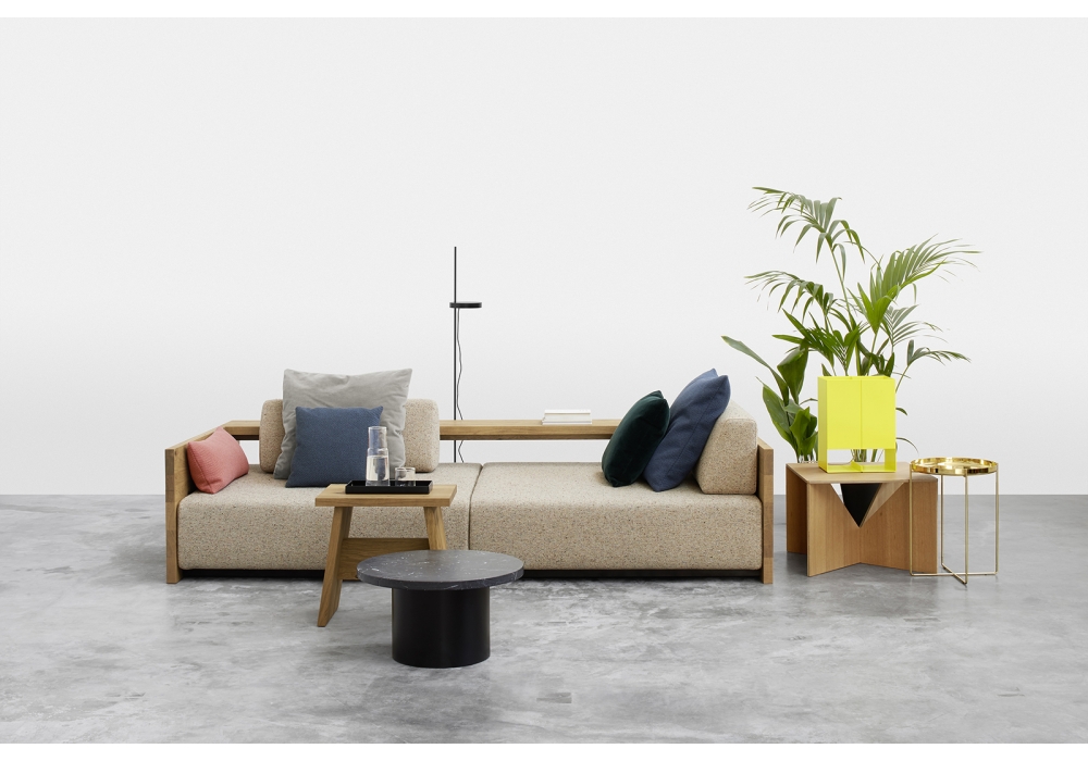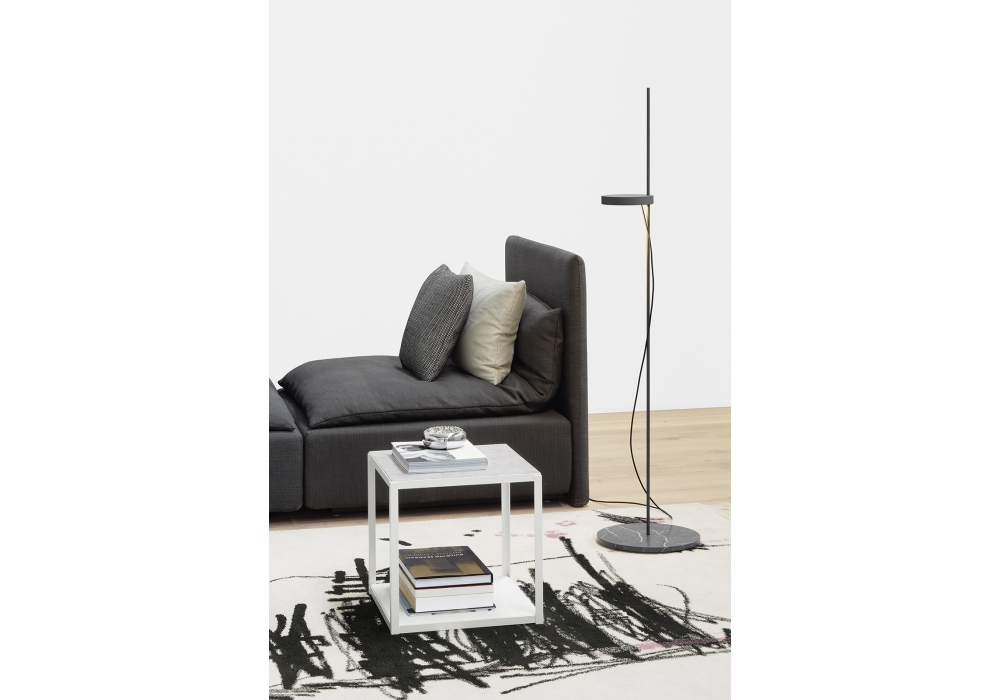 LT06 Palo conçu par Michael Raasch pour E15 est un lampadaire en aluminium enduit de poudre et base en marbre huilé. Hauteur du diffuseur réglable.