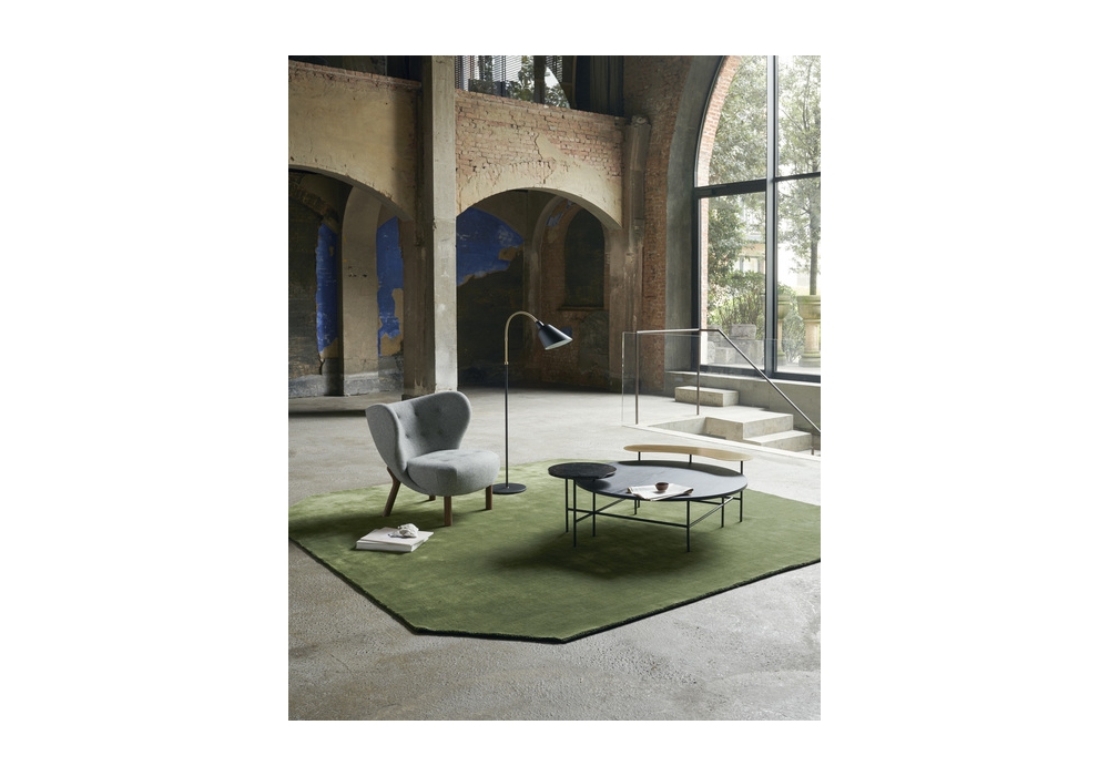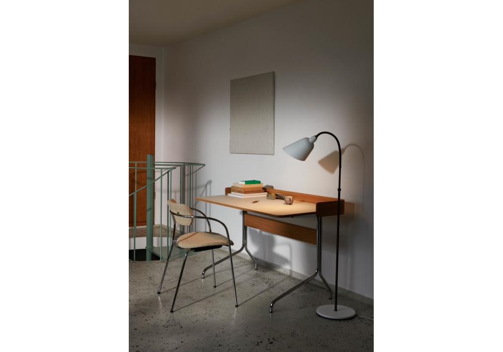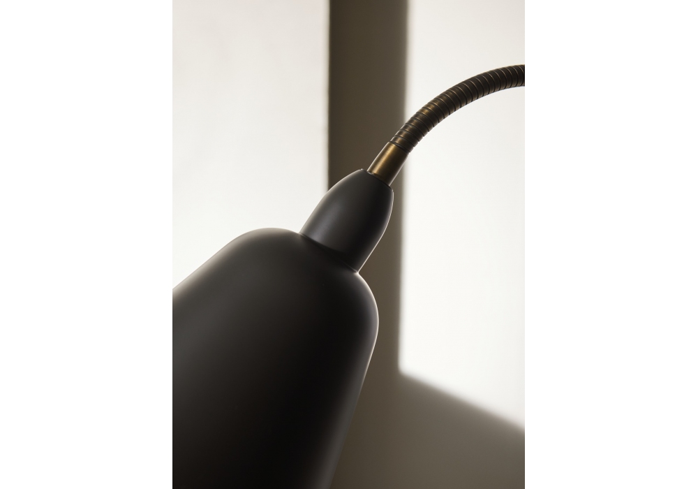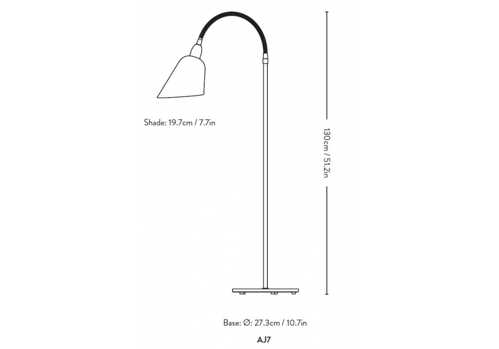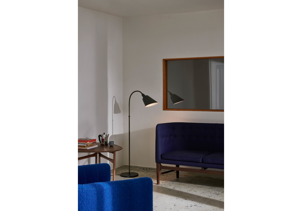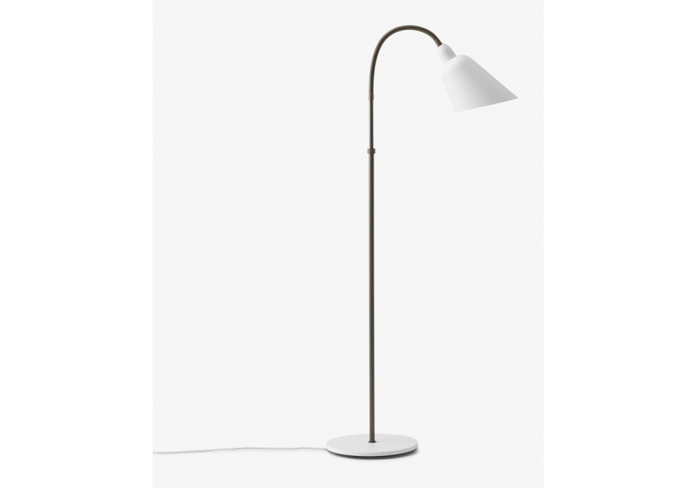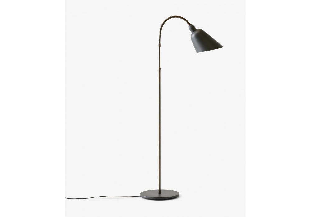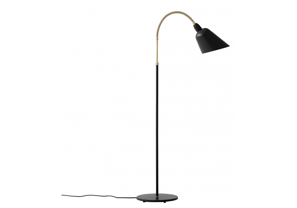 Bellevue conçue par Arne Jacobsen pour &Tradition est un lampadaire en laiton laqué, acier ou aluminium. Câble textile noir avec interrupteur. Disponible en différentes finitions.